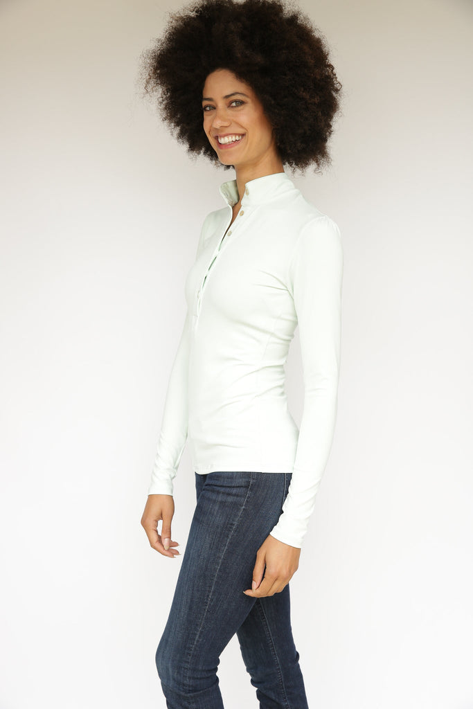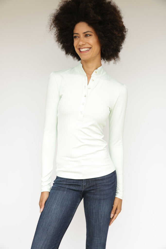 Our Jessica Shirt uses an innovative fabric made from recycled water bottles. Sustainably sourced and made in the USA.